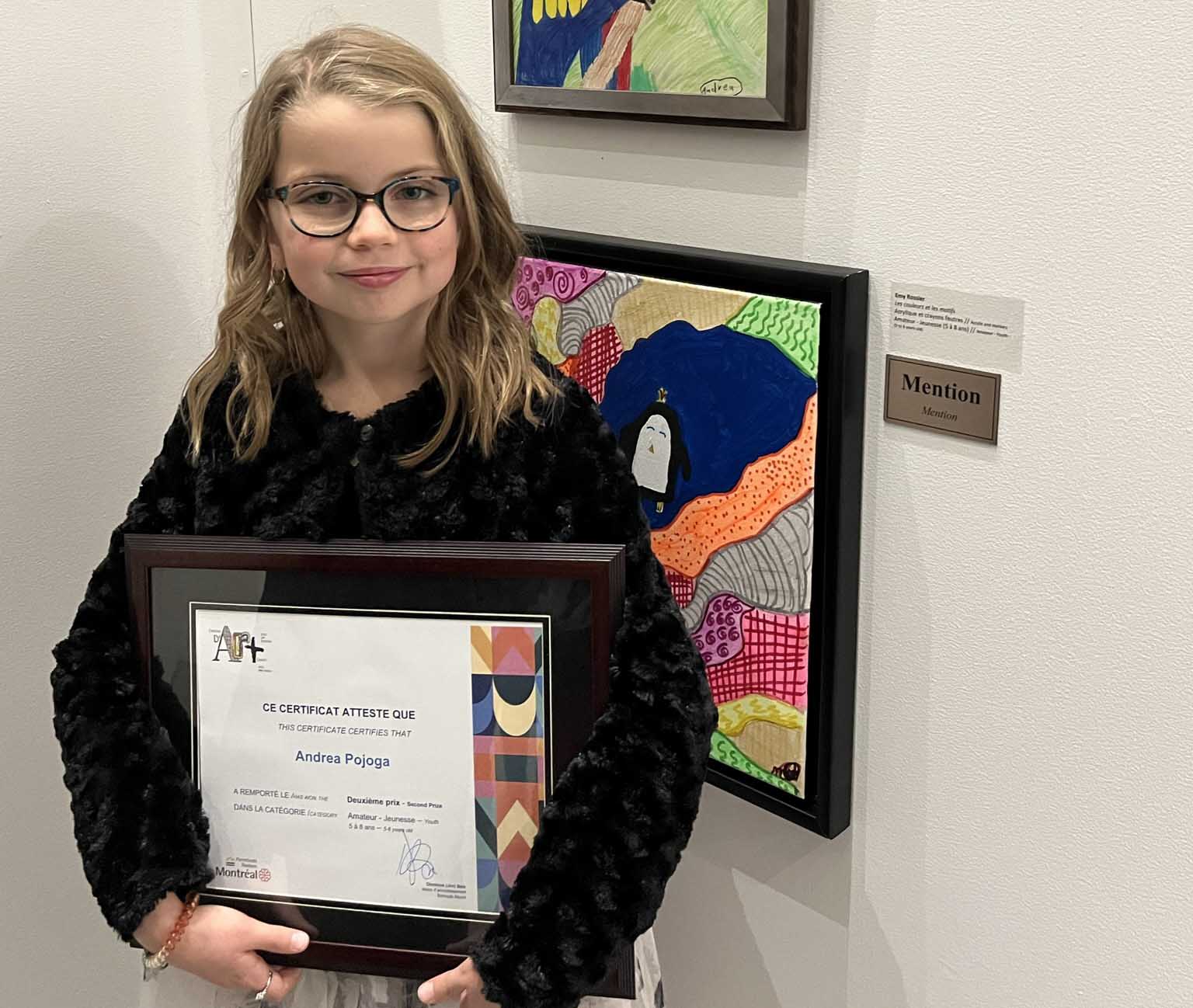 View Larger Image Andrea Pojoga – Prix 2022 Les lauréats de 2022 Découvrez les œuvres de tous les lauréats de l’année 2022. L’article sur le gala a été publié sur le site de l’arrondissement. Concours d’art Pierrefonds-RoxboroGalerie des prix By Site Admin|2025-04-11T11:59:15-04:00mars 20, 2025|Récompenses|0 Comments Share This Story, Choose Your Platform! FacebookXRedditLinkedInWhatsAppTelegramTumblrPinterestVkXingEmail About the Author: Site Admin Related Posts Sophia Abid – Prix 2022 Gallery Sophia Abid – Prix 2022 Sierra Maiorino – Prix 2022 Gallery Sierra Maiorino – Prix 2022 Liana Wissa – Prix 2021 Gallery Liana Wissa – Prix 2021 Judith Sleeds – Prix 2023 Gallery Judith Sleeds – Prix 2023 Leave A Comment Annuler la réponseYou must be logged in to post a comment.