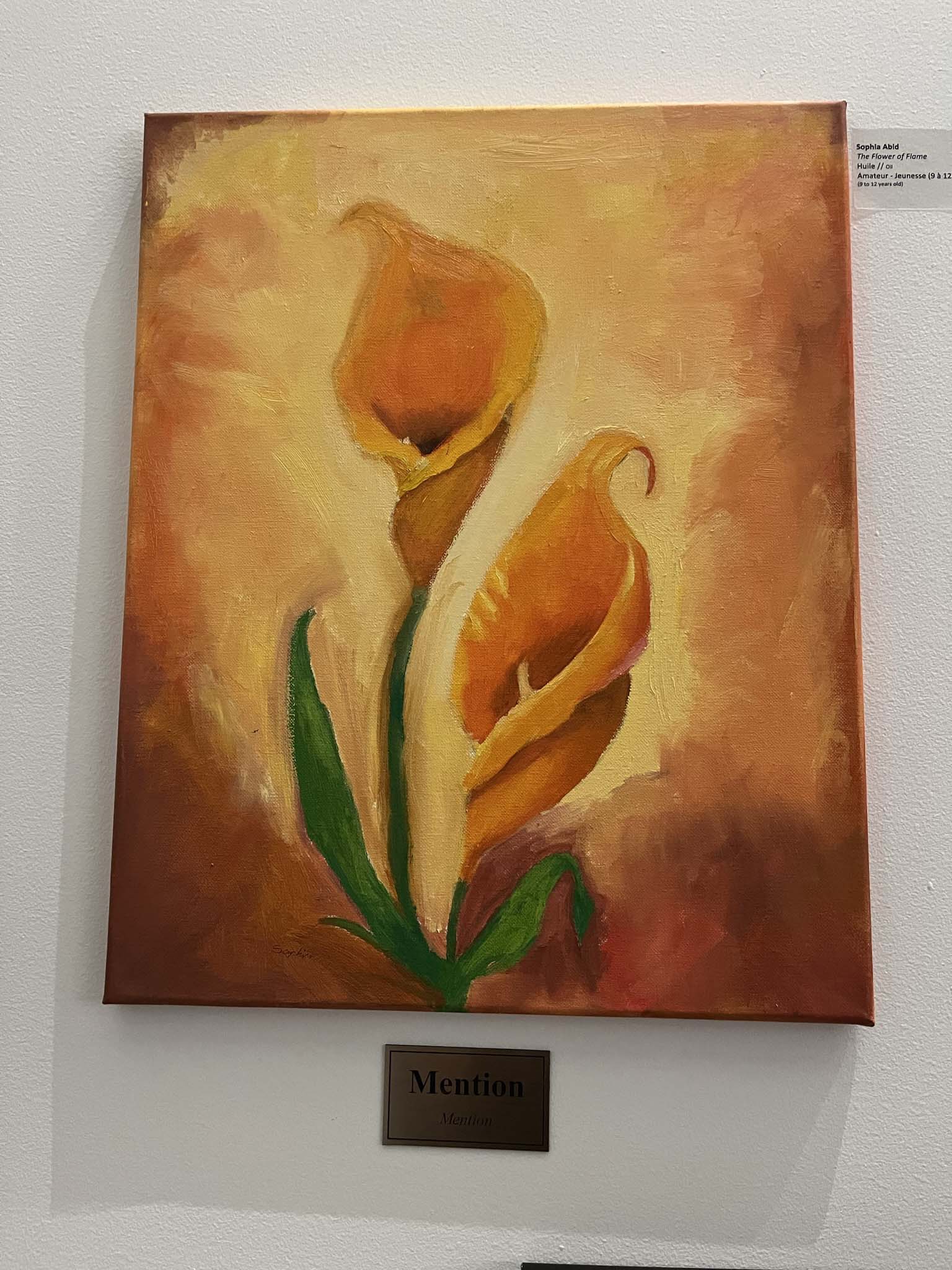 A Special Mention to Sophia Abid "Youth Category - 9 to 12 yrs" Art Contest 2022.